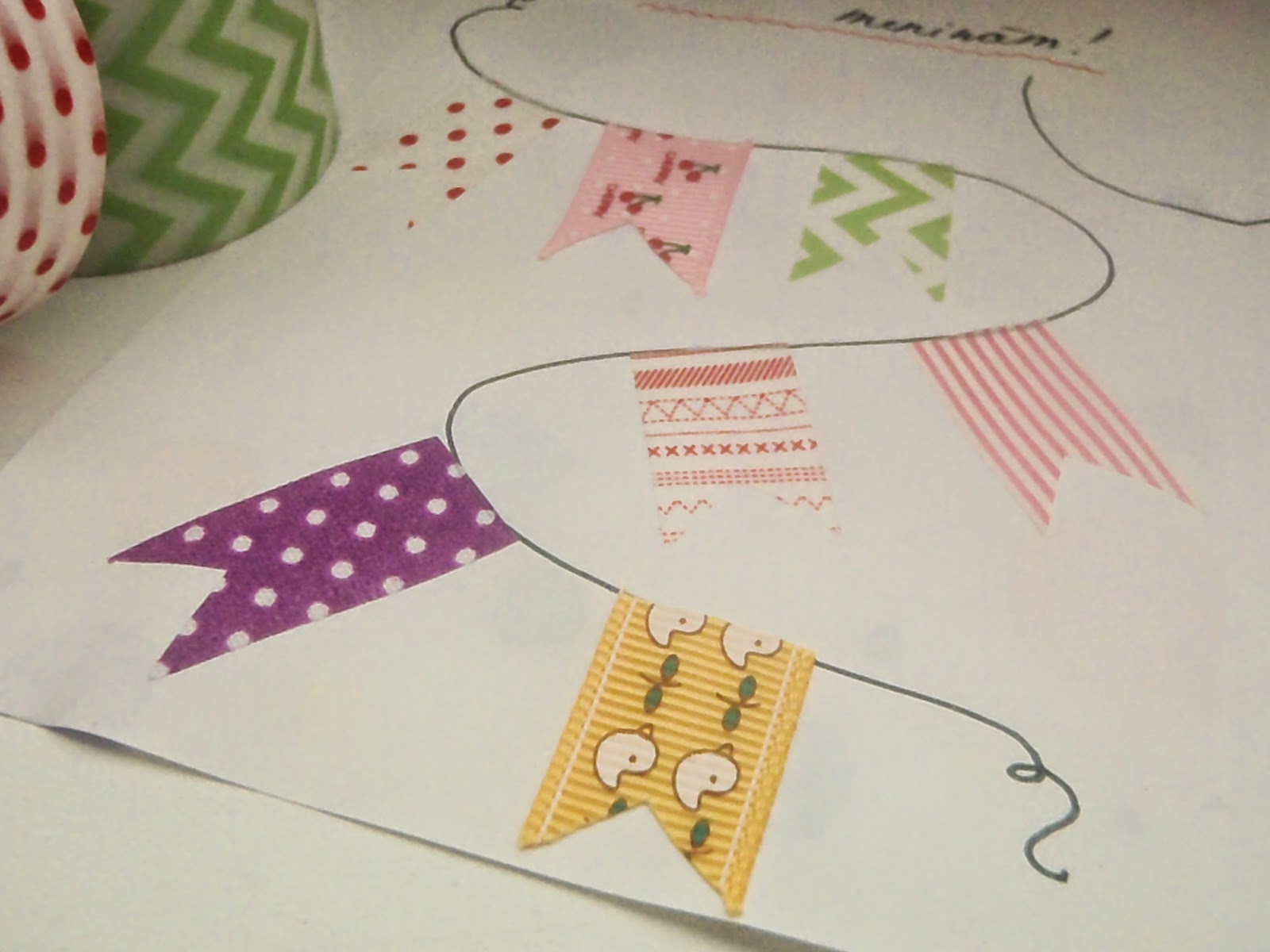 Postup je veľmi jednoduchý. Na prednú stranu sa vodovými farbami kreatívne vybláznite, z papiera si vystrihnete bublinku, do ktorej napíšete meno a prilepíte ju. Dovnútra napíšte pekné venovanie a na druhú stranu môžete prilepiť vašu spoločnú fotku, urobiť zoznam vecí, čo máte na tom človeku radi alebo niečo nakresliť. Ja som nakreslila jednoduchý motúzik, na ktorý som popriliepala washi vlajočky.